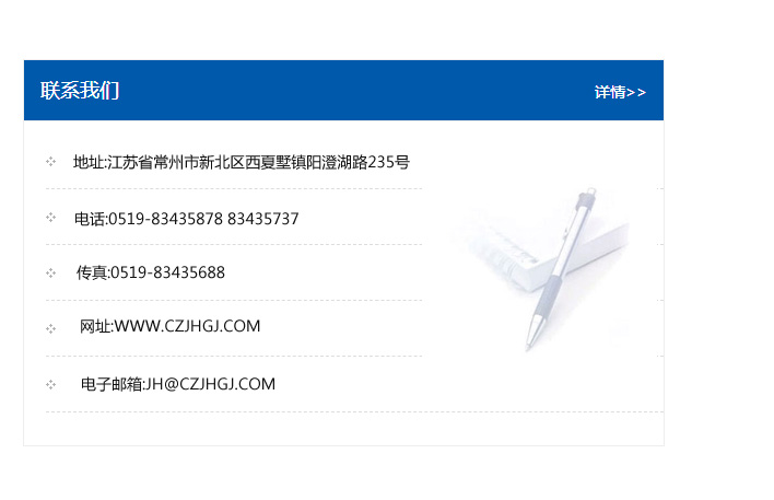 地址:常州市新北區友邦商務大廈1幢16、17層  電話:0519-85101652  傳真:0519-85112595  郵編:213022  網址:www.cz-jiayue_cn.ask71.com  郵箱:xiajifengaa@163.com